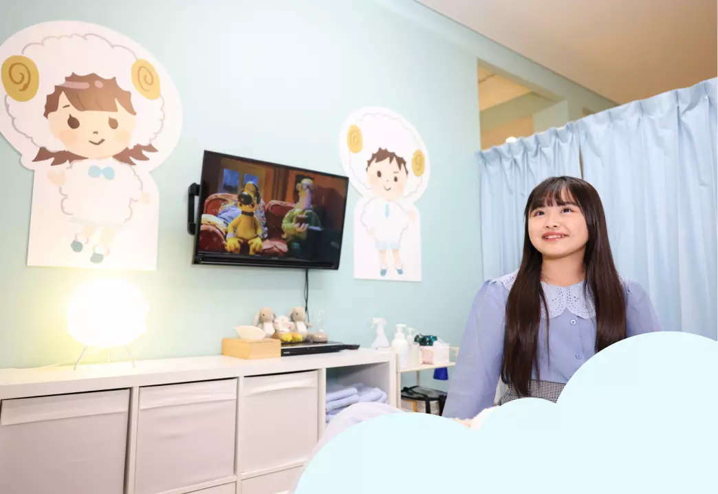 サロンの環境作りにも徹底してこだわっており、施術室は病院のような無機質で緊張する空間ではなく、まるで自分のお家の子供部屋にいるかのような、明るく温かみのある雰囲気に整えられています。